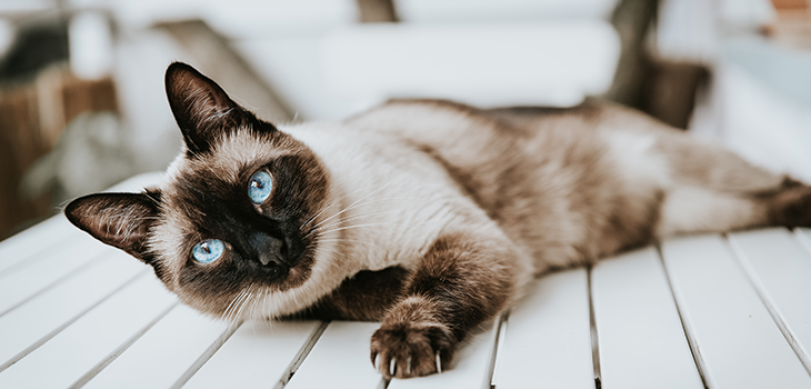 Sijamska mačka leži
